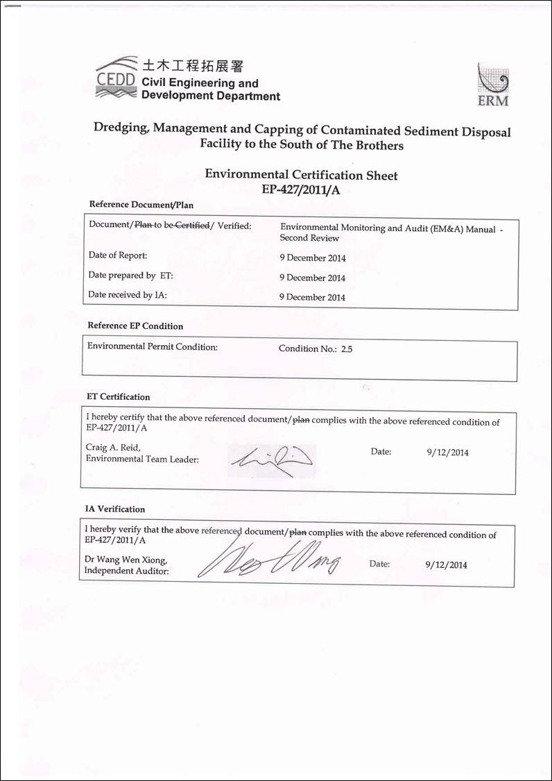 the requirements of Condition 4 of the EP (EP-427/2011/A), an EM&A