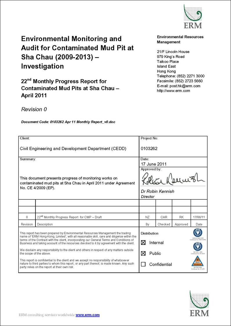 confined marine disposal capacity for contaminated mud arising from the HKSAR’s dredging and reclamation projects. CMP IVc is