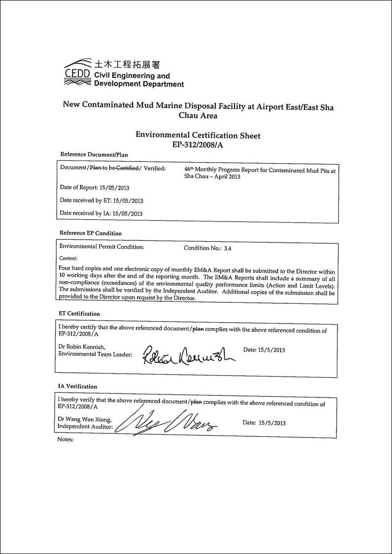 Impact Water Quality Monitoring during Dredging Operations for CMP Vd were conducted on 16 April 2013; and