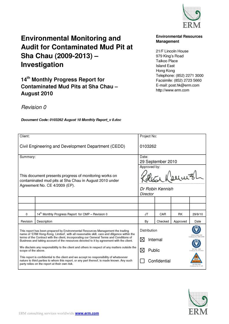 PROGRESS REPORT FOR CONTAMINATED MUD PITS AT SHA CHAU - August 2010