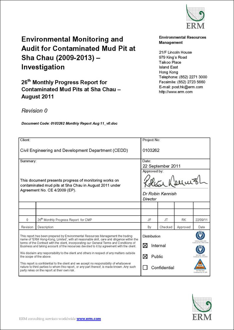 confined marine disposal capacity for contaminated mud arising from the HKSAR’s dredging and reclamation projects. CMP IVc is
