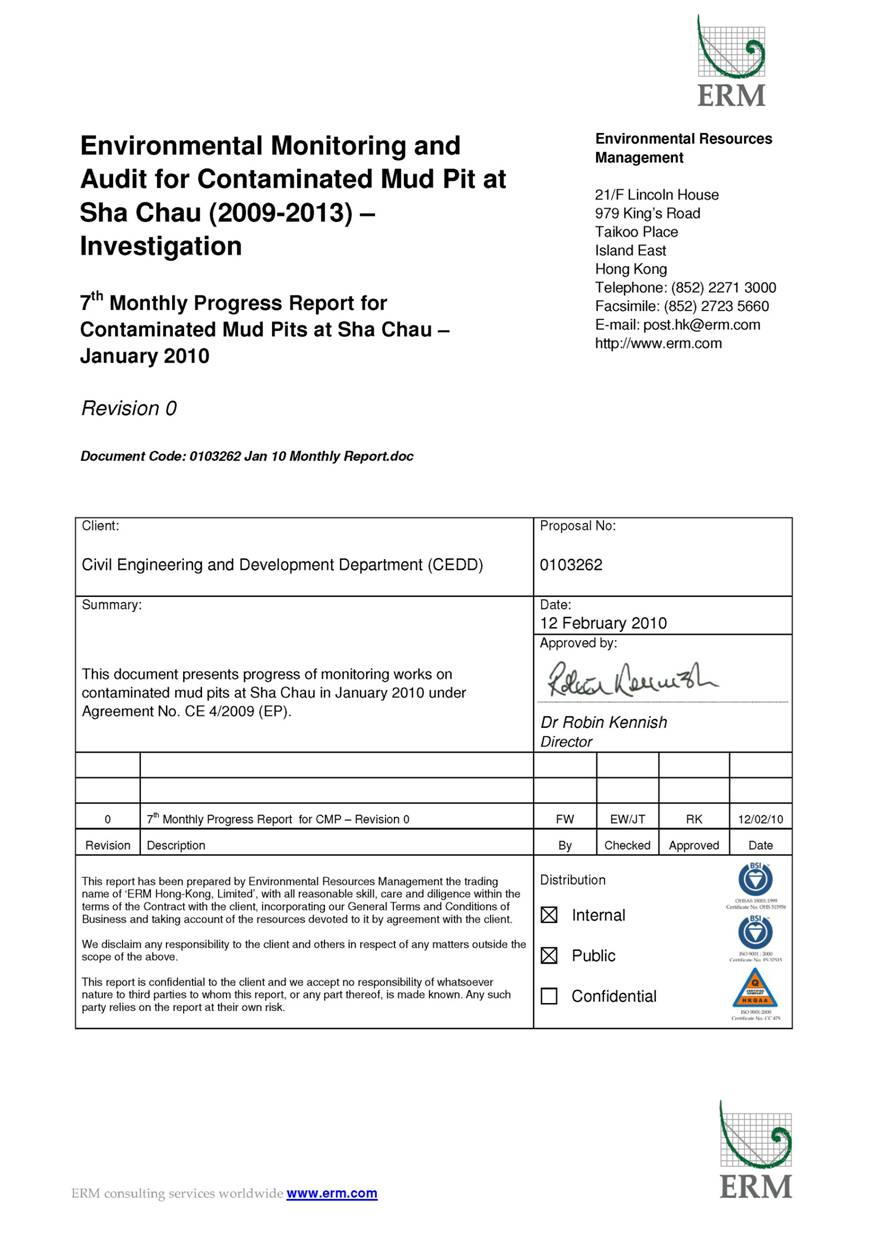 MONTHLY PROGRESS REPORT FOR CONTAMINATED MUD PITS AT SHA CHAU - January 2010