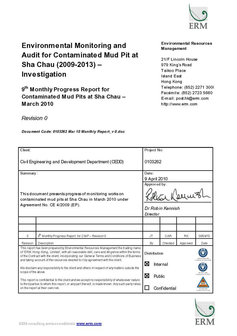 MONTHLY PROGRESS REPORT FOR CONTAMINATED MUD PITS AT SHA CHAU - March 2010