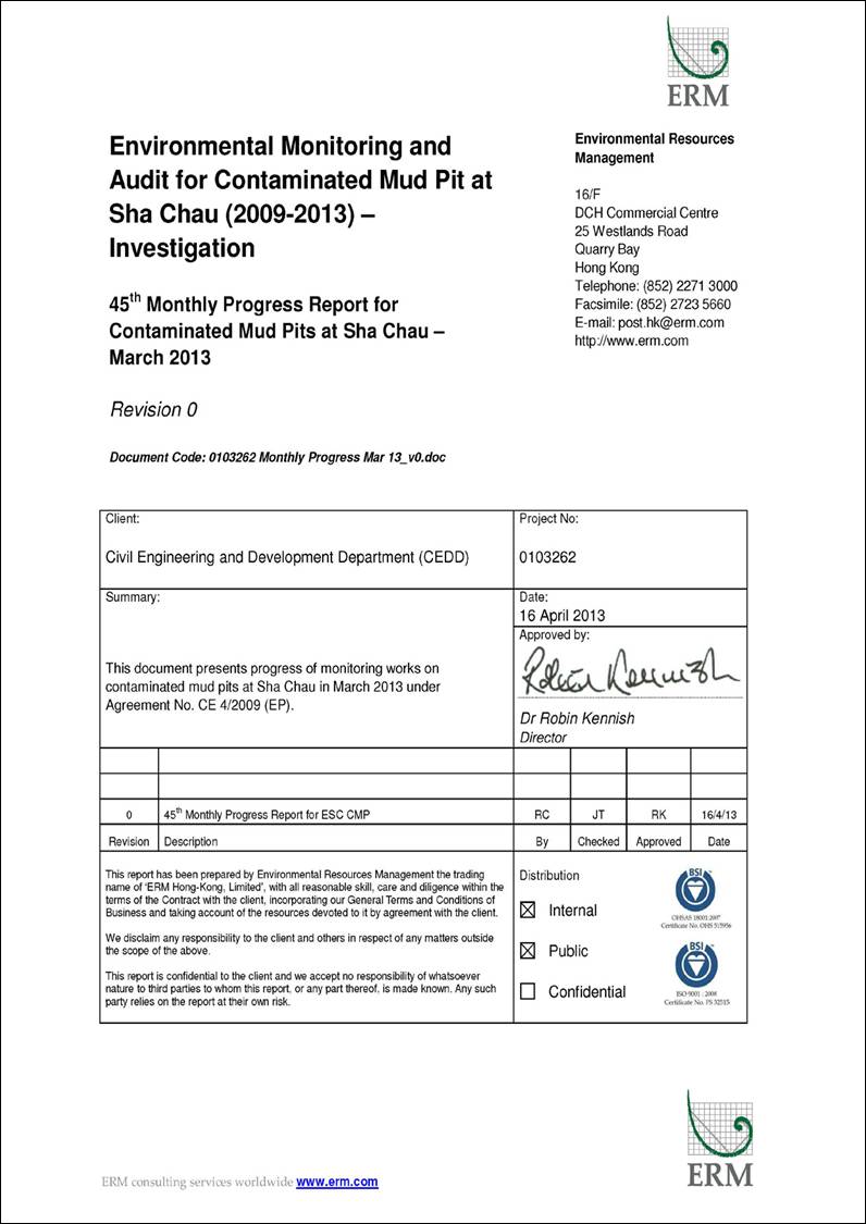 45TH MONTHLY PROGRESS REPORT FOR CONTAMINATED MUD PITS AT SHA