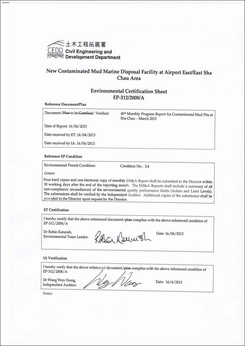 at CMP Va while the monitoring team was on-site. As such, in-situ measurements and water sampling were not undertaken for Water Column Profiling in March 2013.
