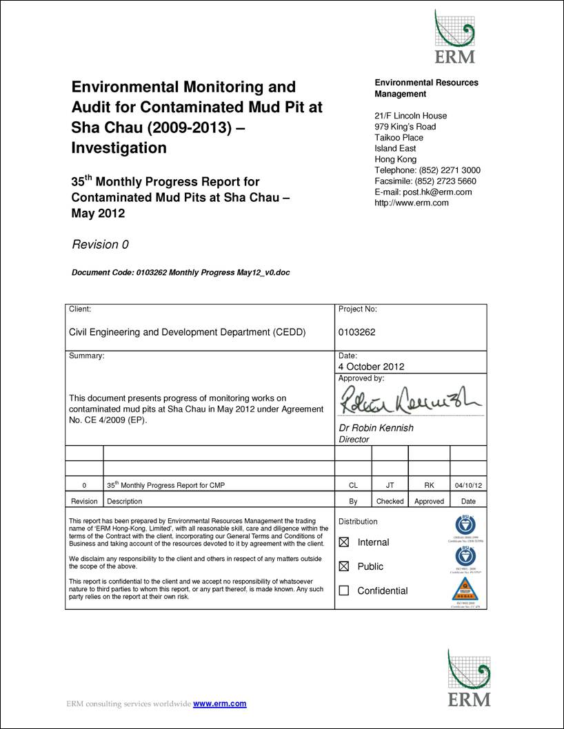 Prepared for CEDD for EM&A for Contaminated Mud Pit at Sha Chau (2009-2013) ¡V