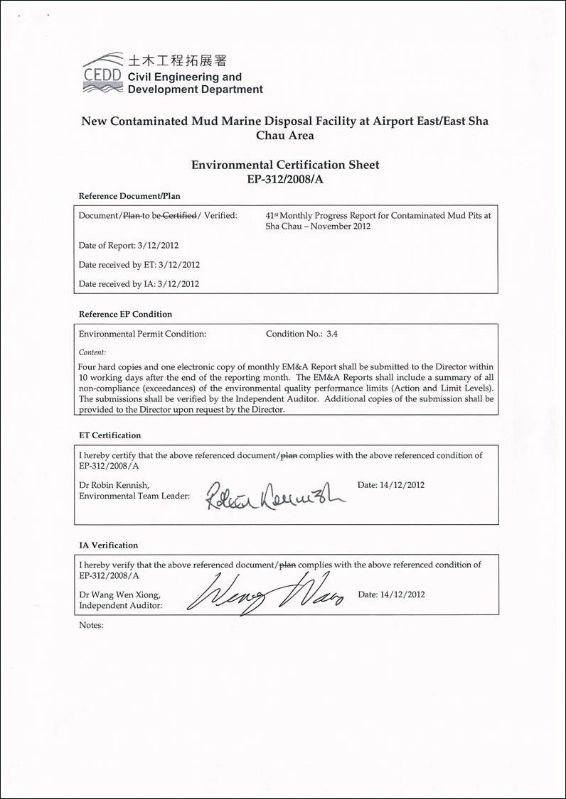 MONTHLY PROGRESS REPORT FOR CONTAMINATED MUD PITS AT SHA CHAU November 2012