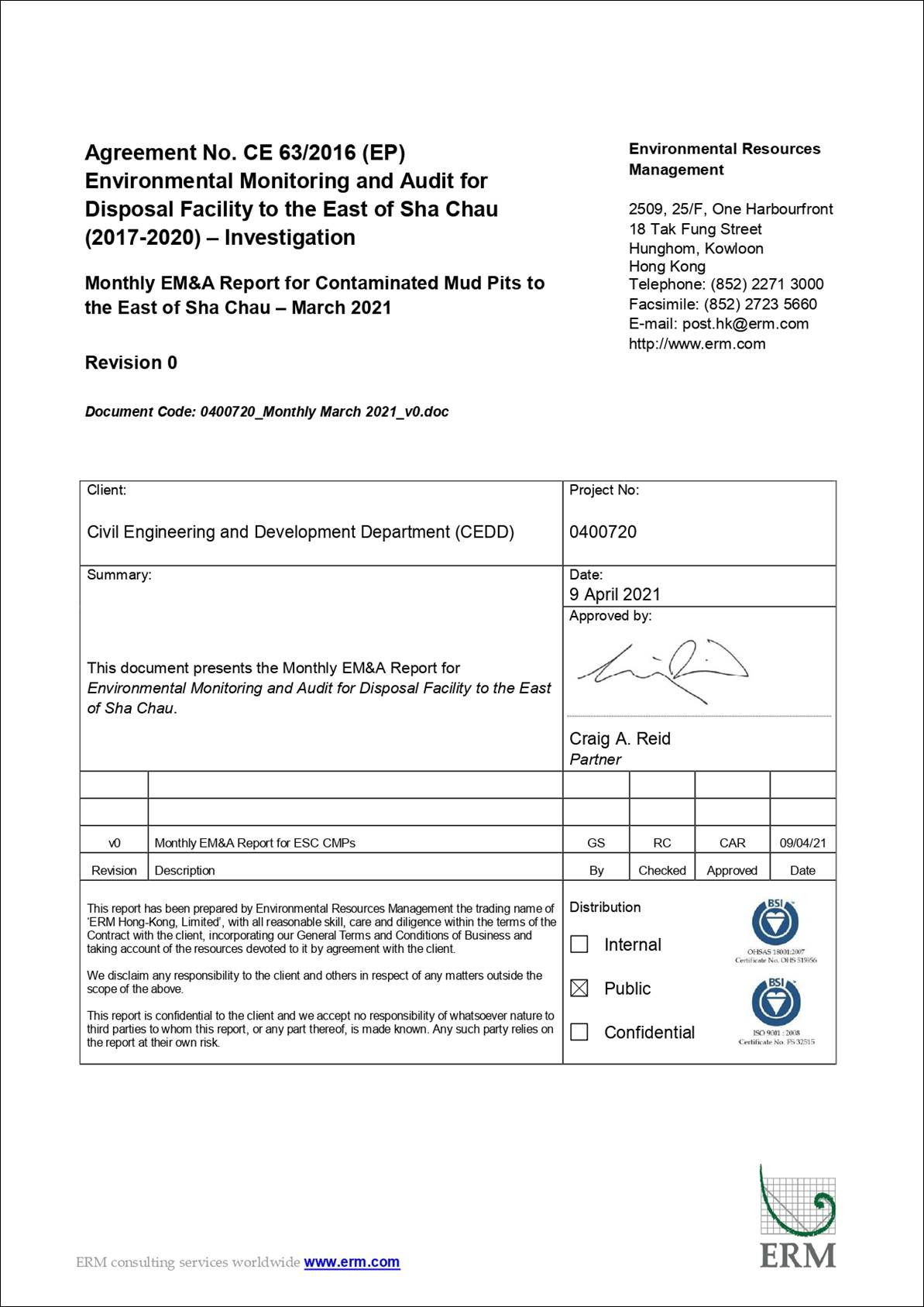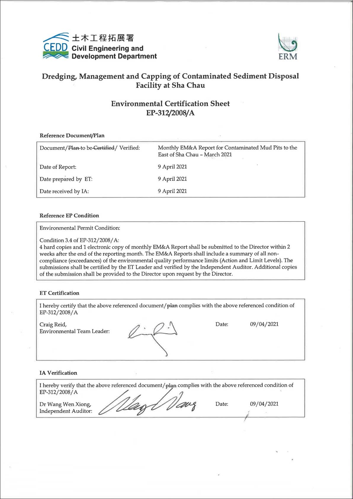 Monthly EM&A Report for March 2021 covers