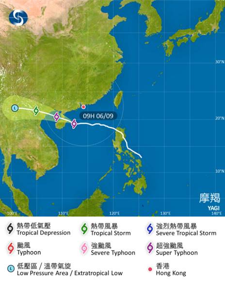 Track of Tropical Cyclone Yagi (Source: Hong Kong Observatory)