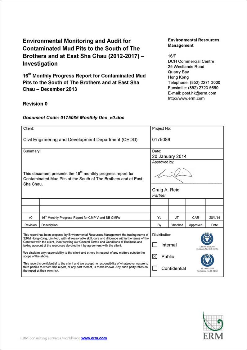 covers the dredging, disposal and capping operations of the SB CMPs as well as CMPs at East of Sha Chau (ESC).