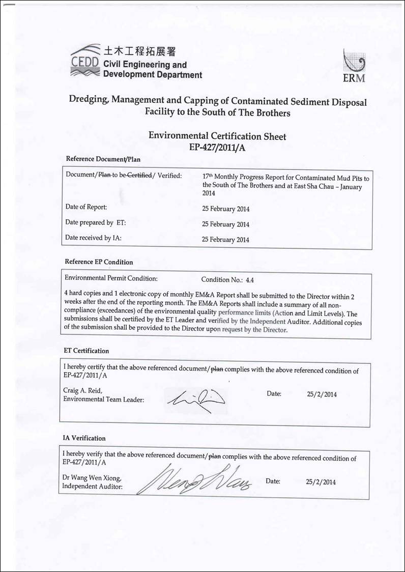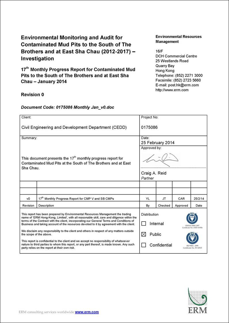 covers the dredging, disposal and capping operations of the SB CMPs as well as CMPs at East of Sha Chau (ESC).