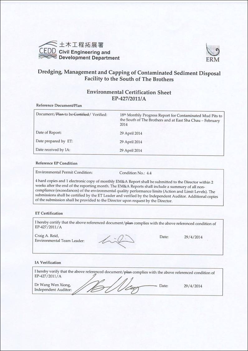 at East of Sha Chau (ESC). In February 2014, the following works were