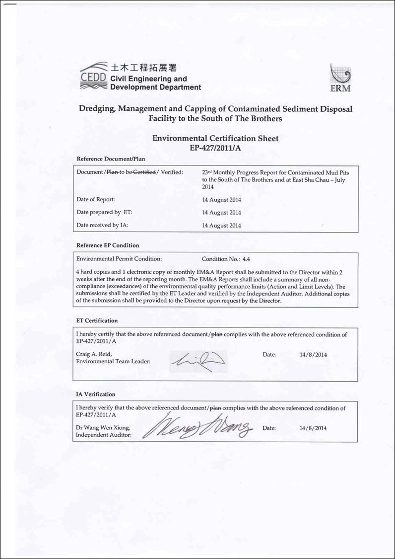 The present EM&A programme under Agreement No. CE 23/2012 (EP) covers the dredging,