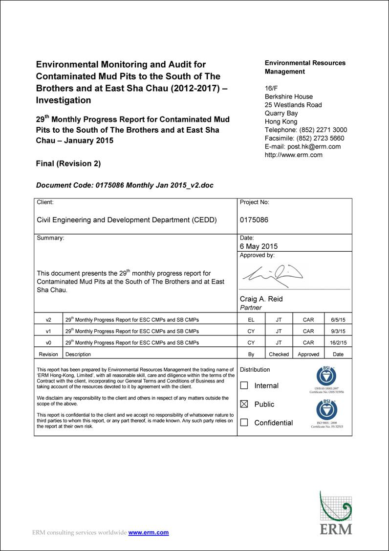 29th MONTHLY PROGRESS REPORT FOR January 2015