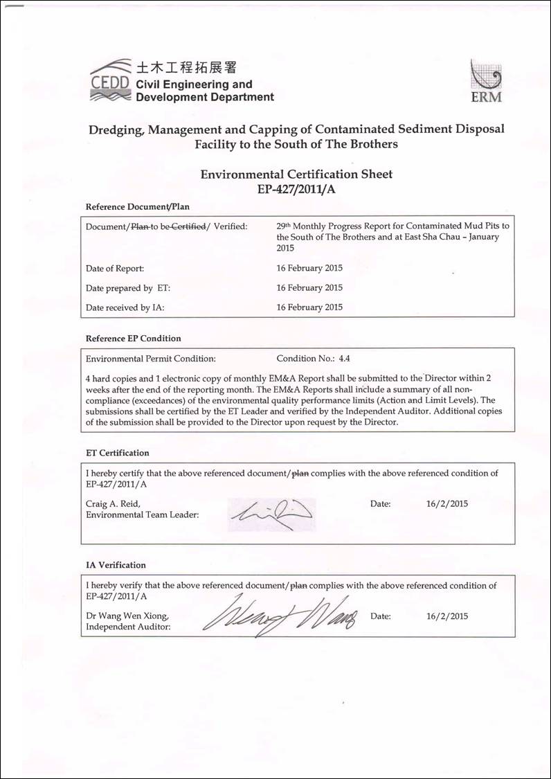 disposal and capping operations of the SB CMPs as well as ESC CMPs. Detailed works schedule for both CMPs is shown in Figure 1.1. In January 2015, the following