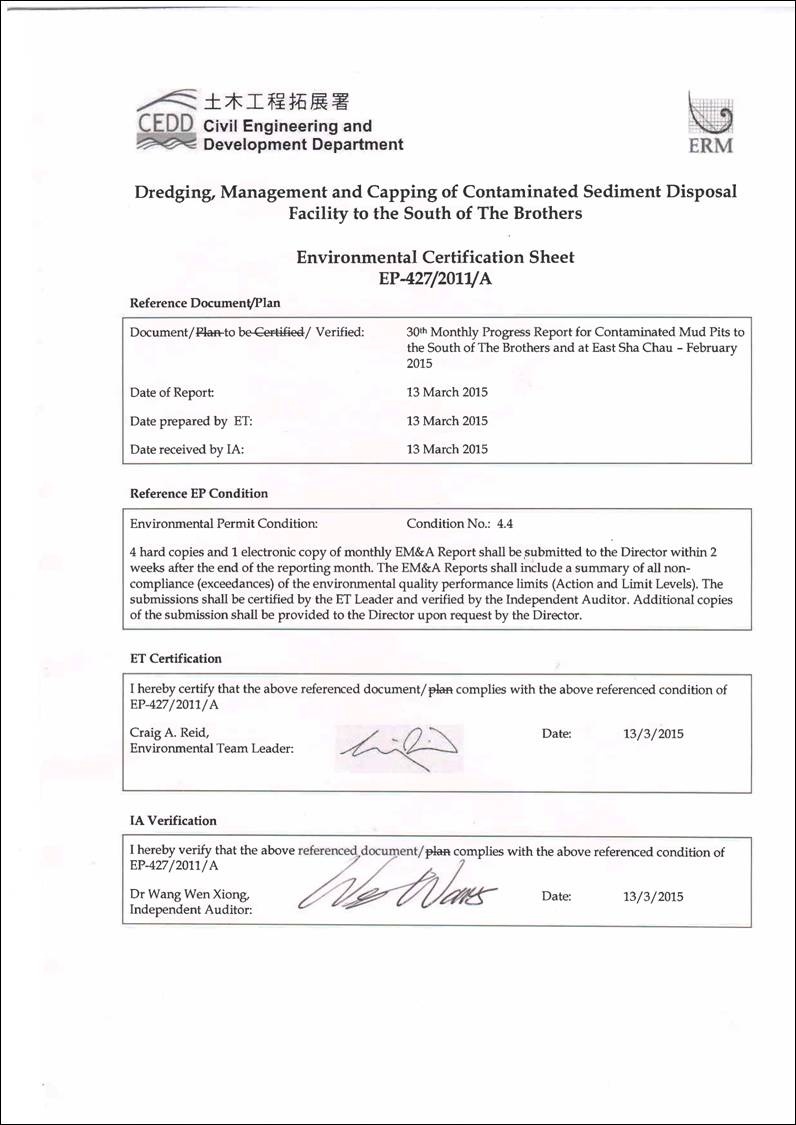 for ESC CMP V and on 23 December 2011 for SB CMPs, respectively. Under the requirements of the EPs, an Environmental Monitoring and