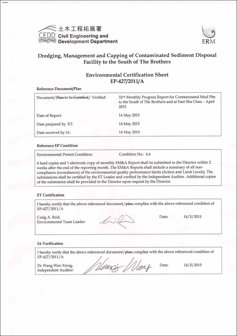 The present EM&A programme under Agreement No. CE 23/2012 (EP) covers the dredging,