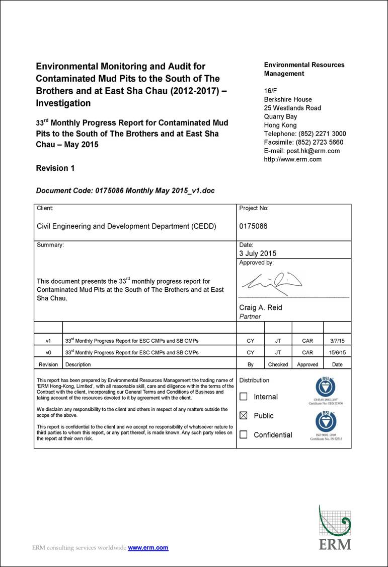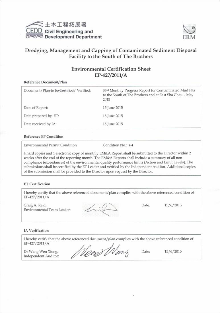 in April 2015 and at Impact and Shum Shui Kok stations in May 2015. However, concentrations of SS complied with the Action and Limit