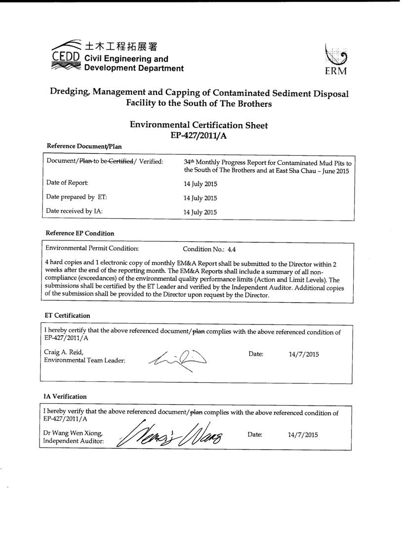 Brief discussion of the monitoring results of Water Quality Monitoring during Capping of ESC CMPs conducted on 2 June 2015 is presented below.