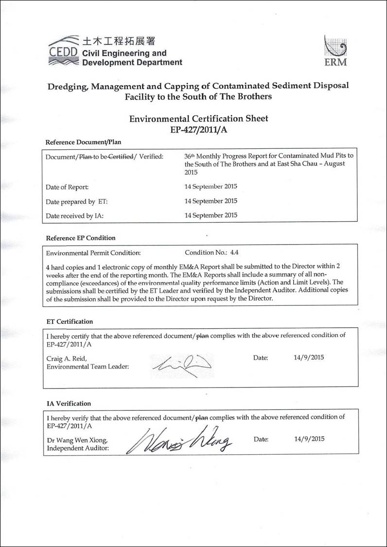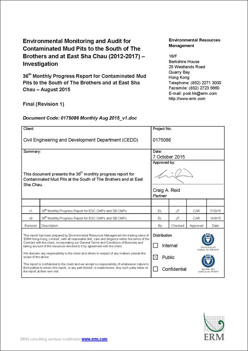 This 36th Monthly Progress Report covers the EM&A activities for the reporting month of August 2015.