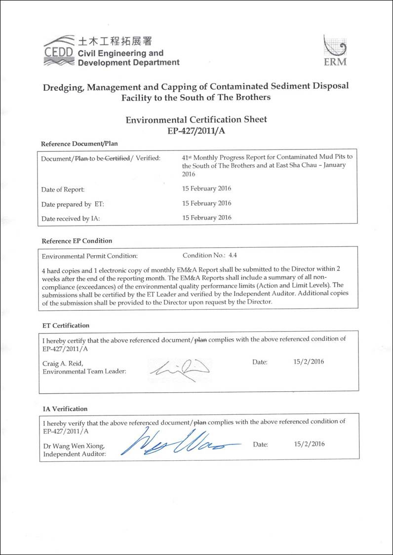 Impact Water Quality Monitoring during Dredging Operations of ESC CMP V; and