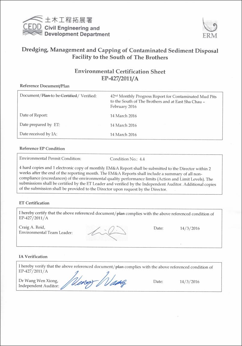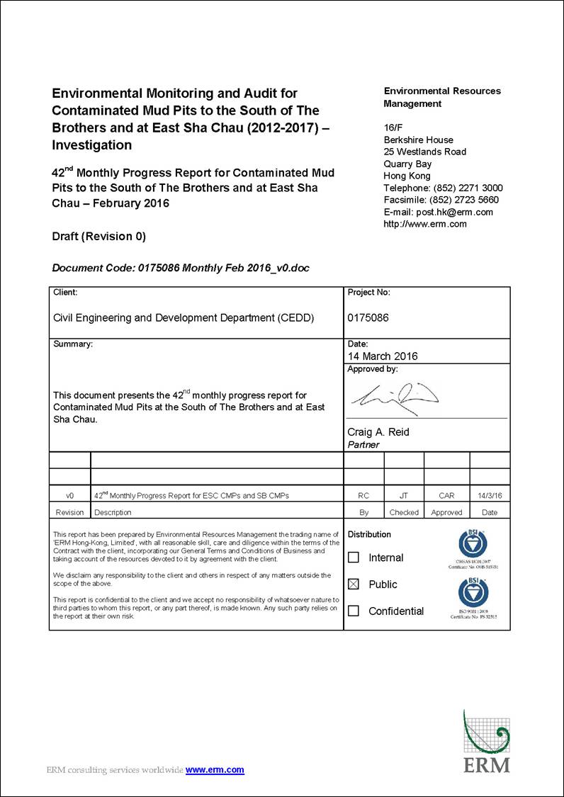 disposal and capping operations of the SB CMPs as well as ESC CMPs. Detailed works schedule for both CMPs is shown in Figure 1.1. In February 2016, the following works