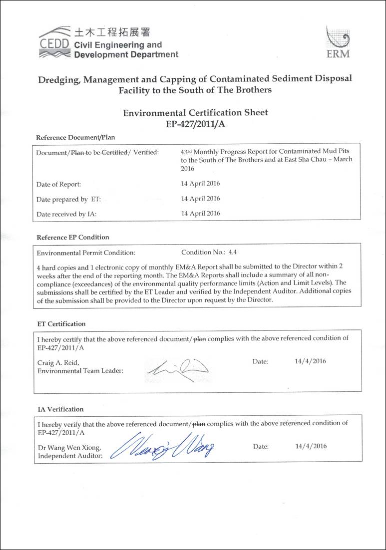 Analyses of results for March 2016 indicated that the SS levels complied with the WQO at Downstream stations.