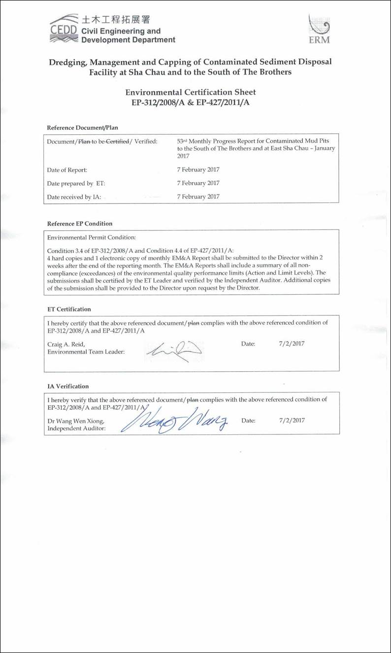 dredging, disposal and capping operations of the SB CMPs as well as ESC CMPs. Detailed works schedule for ESC CMPs and