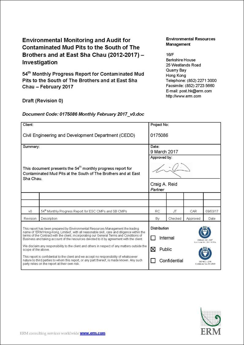 been disposed of at a series of seabed pits at East of Sha Chau (ESC). In late 2008, a review indicated that