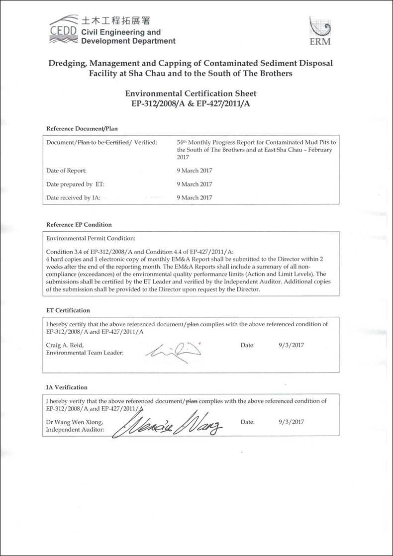 November 2008 for ESC CMP V and on 23 December 2011 for SB CMPs, respectively. Under the requirements of the EPs, an Environmental Monitoring and Audit (EM&A) programme