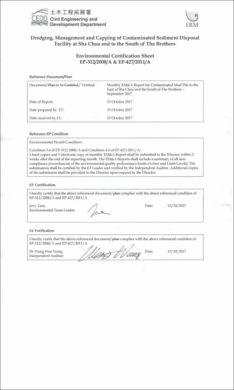 MONTHLY EM&A REPORT FOR September 2017