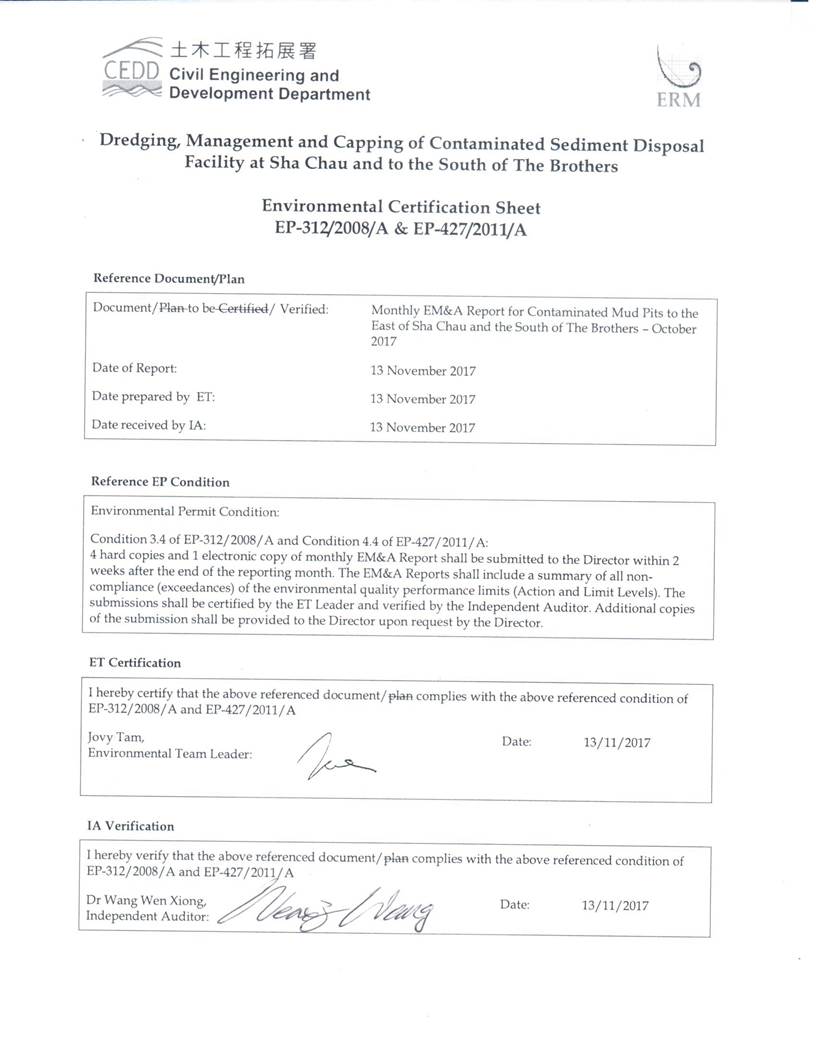 October 2017 covers the EM&A activities for