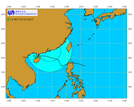of Tropical Cyclone Hato from 20 to 24 August 2017 (Source: Hong Kong Observatory)