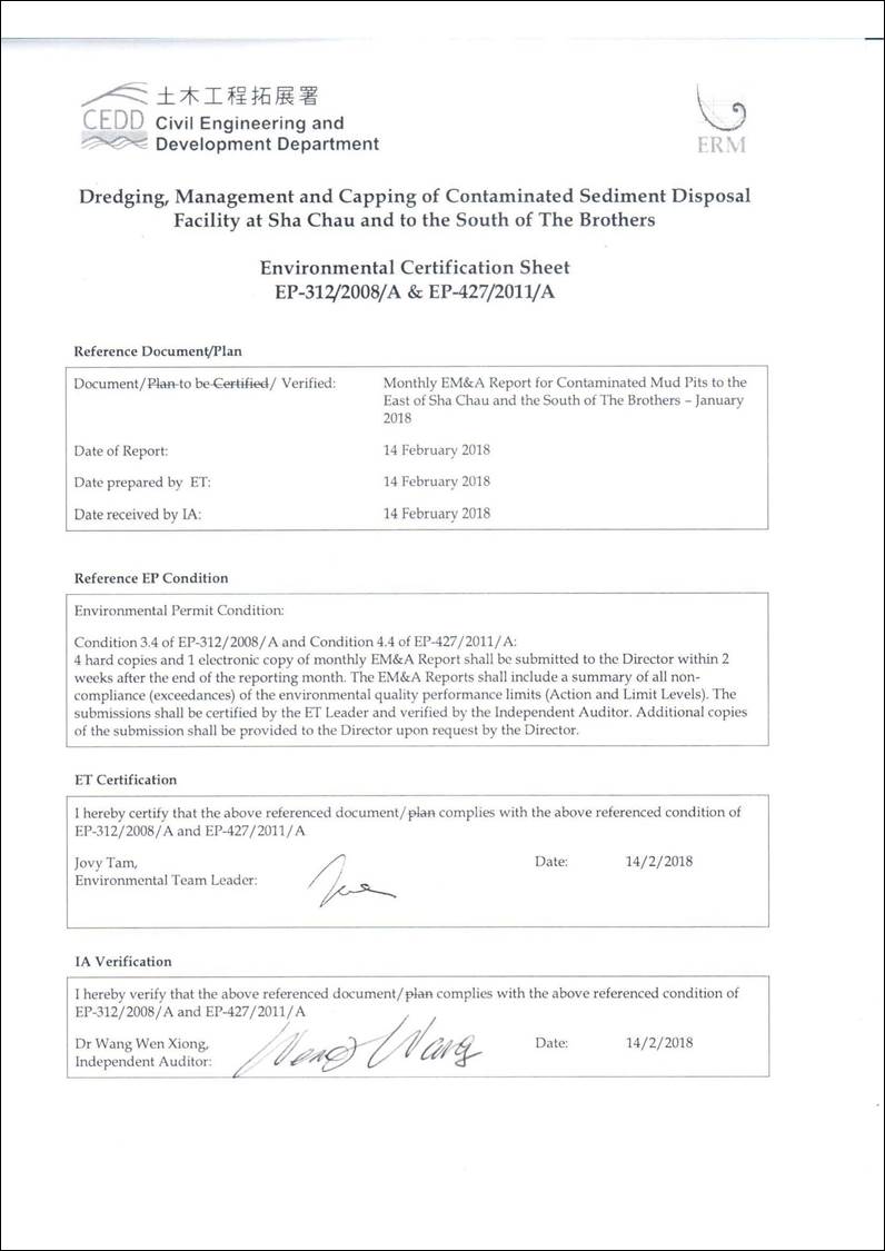 EM&A Report for January 2018: