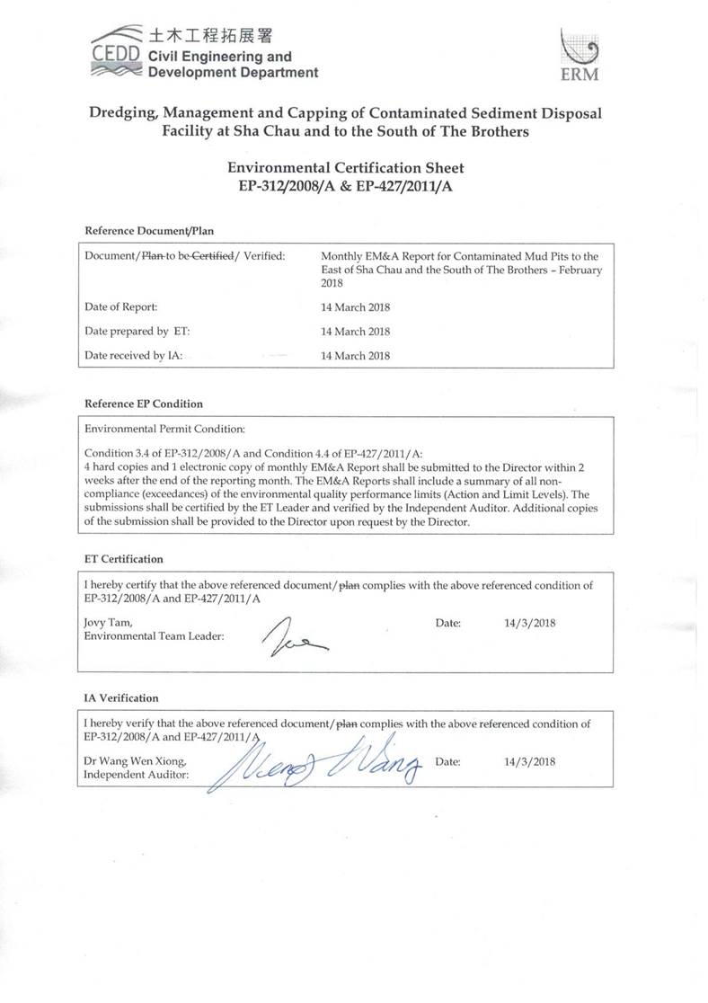 This Monthly EM&A Report for February 2018 covers the EM&A activities for the reporting month of February 2018.