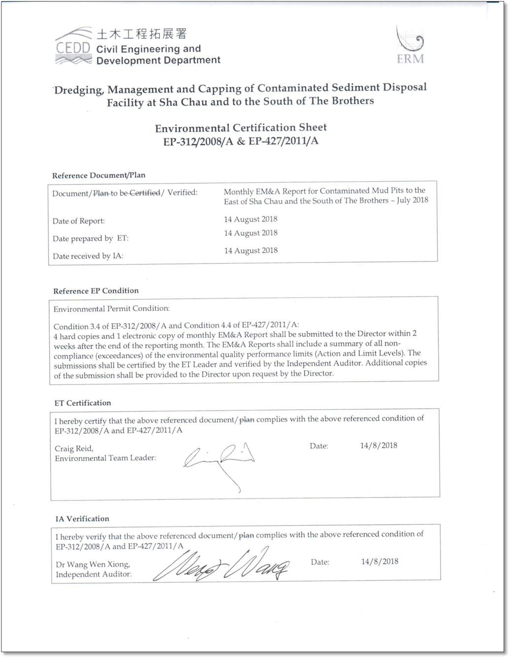 ESC CMP V is presented in this Monthly EM&A Report for July 2018: