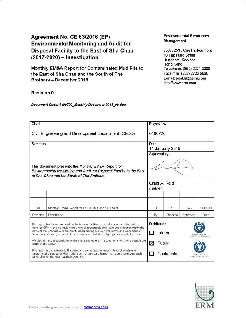 for Disposal Facility to the East of Sha Chau (2017-2020) - Investigation