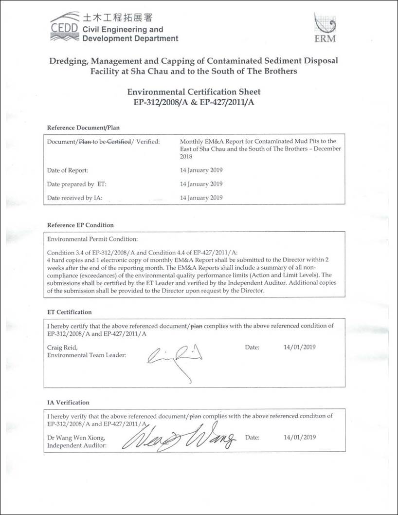 Impact Sediment Chemistry of ESC CMPs in December 2018.