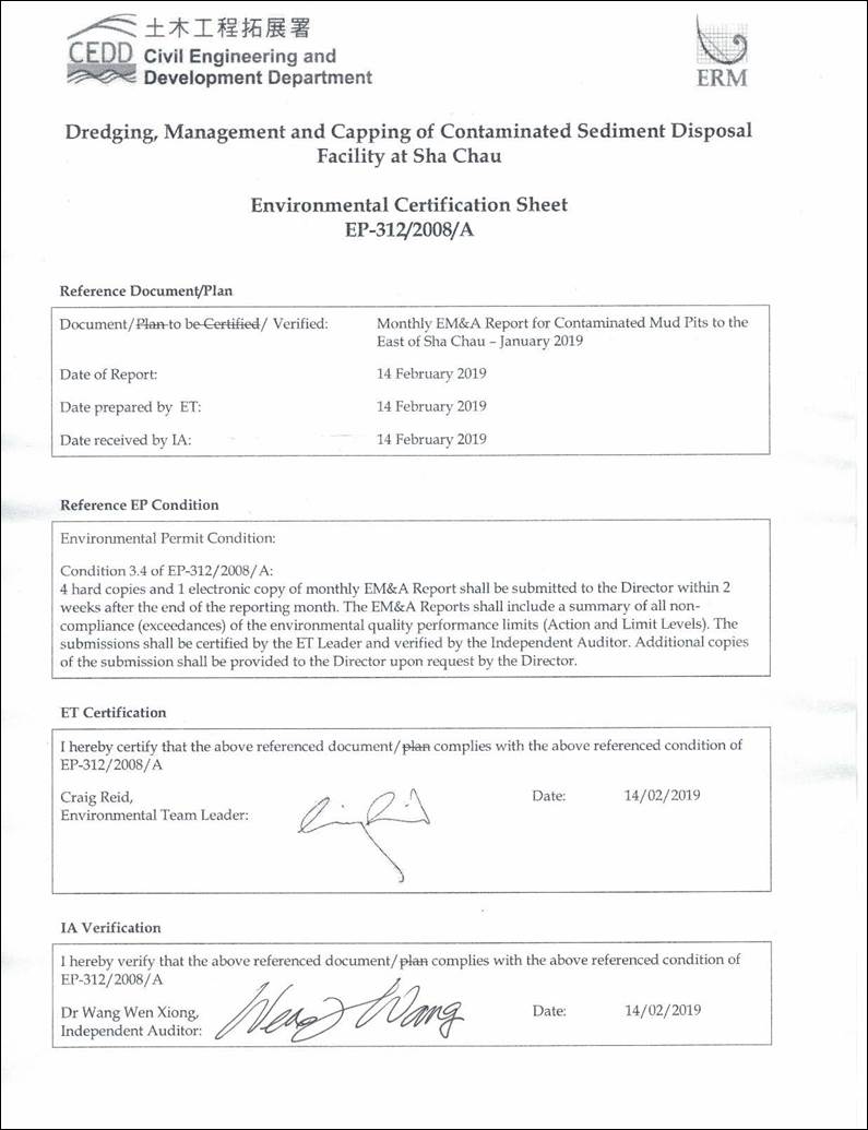 for the EM&A programme). The scheduled EM&A programme for SB CMPs was completed in December 2018. Detailed works