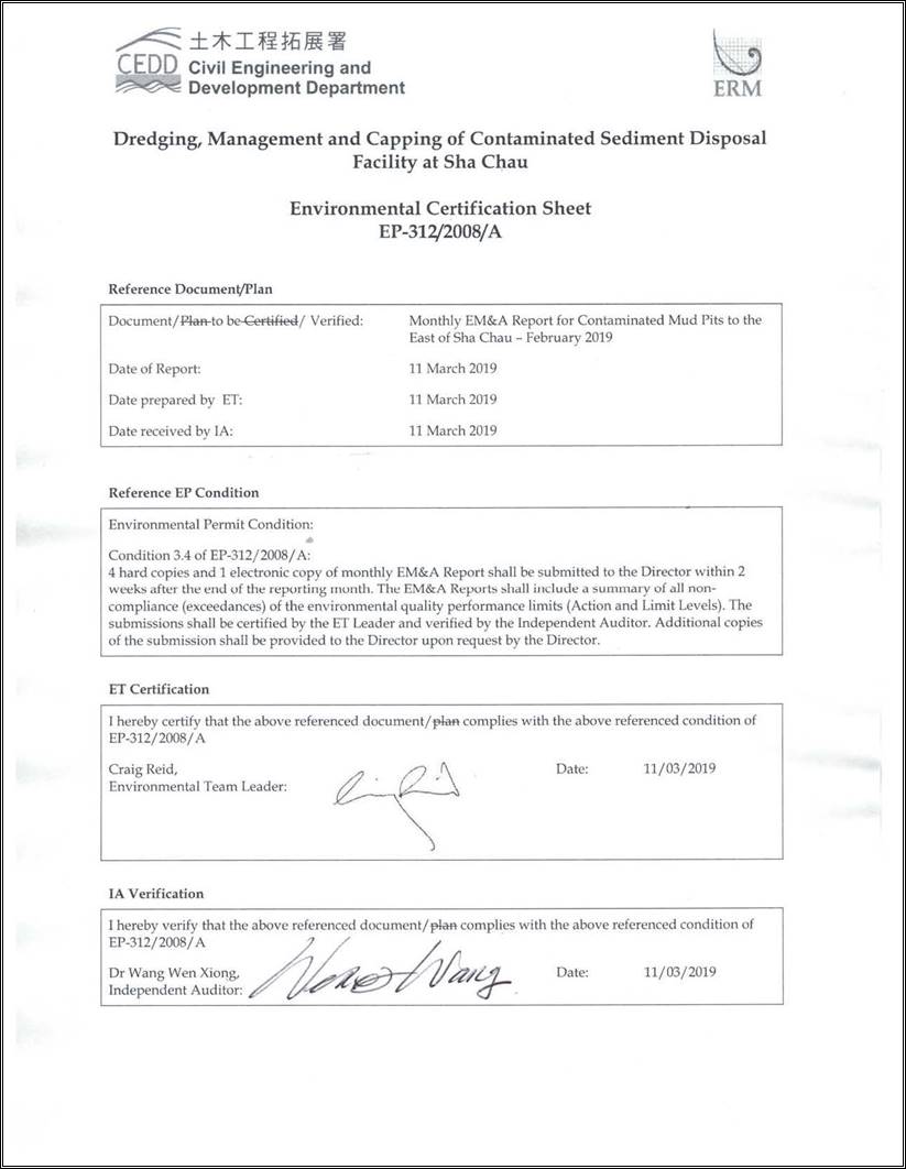 scheduled EM&A programme for SB CMPs was completed in December 2018.