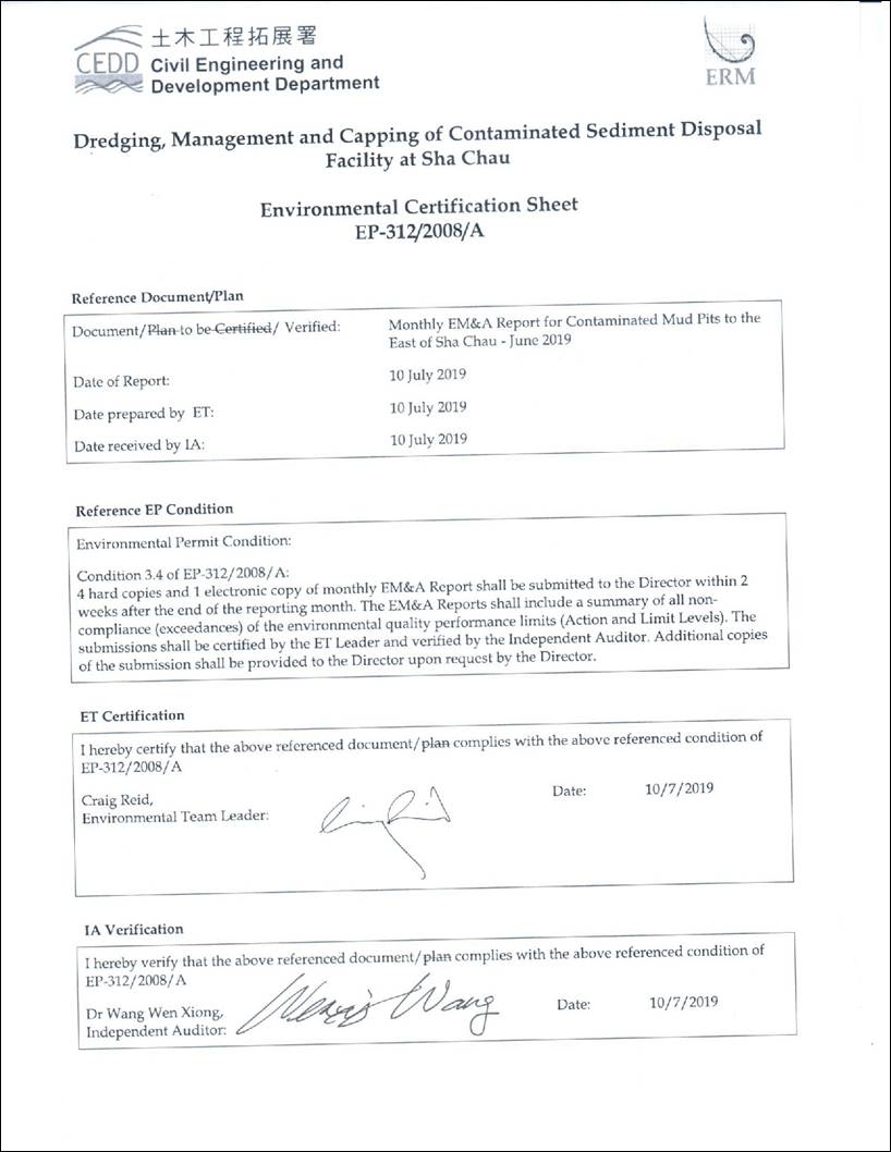 activities for ESC CMP V is presented in this Monthly EM&A Report for June 2019: