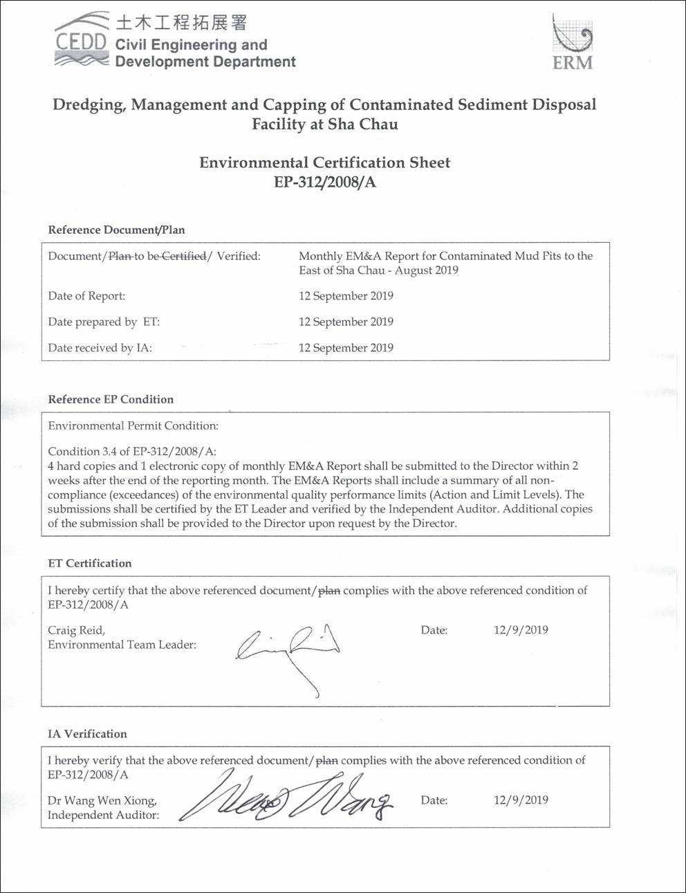 of the following activities for ESC CMP V is presented in this Monthly EM&A Report for August 2019:
