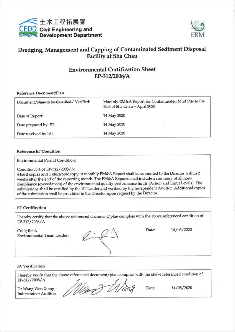 as well as the capping operations of the SB CMPs (see Annex A for the EM&A programme). The scheduled EM&A programme for SB CMPs was completed in